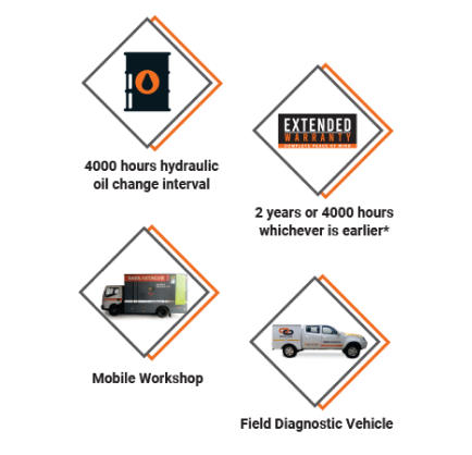 Achieve higher performance and peace of mind through extended warranty and with Tata Hitachi Genuine Spare Parts, strategically located warehouses and Field Diagnostic Vehicles for quicker after-sales support. Extensive dealership network and trained engineers to support and carry out on the maintenance activities.